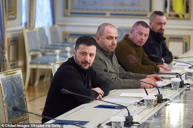 Rustem Umirov (na foto, à direita de Zelensky) foi chamado para a equipe de negociação no último minuto para substituir Andriy Yermak.