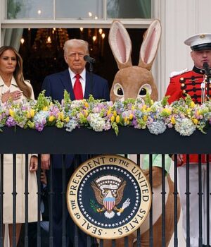 Com o presidente Donald Trump e a primeira -dama Melania Easter na segunda -feira, a varanda de Truman teve uma interação que poderia parecer perturbada aos olhos.