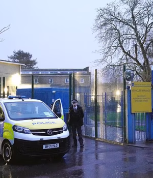 O suspeito, que não pode ser identificado devido à sua idade, teria esfaqueado um estudante no pescoço com uma faca de cozinha na frente de uma turma de crianças na Kingsbury High School, em Brent, norte de Londres.