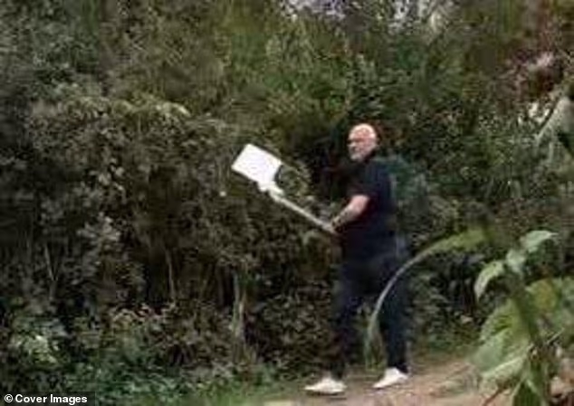 ‘Ele então saiu e cinco minutos depois voltou com um machado e tentou derrubar o poste de madeira antes de jogá-lo de volta em um arbusto.’