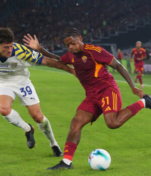 ROMA, ITÁLIA – 29 DE OUTUBRO: Leon Bailey da AS Roma controla a bola contra Alessandro Circati do Parma Calcio 1913 durante a partida da Série A entre AS Roma e Parma Calcio 1913 no Stadio Olimpico em 29 de outubro de 2025 em Roma, Itália. (Foto de Paolo Bruno/Getty Images)
