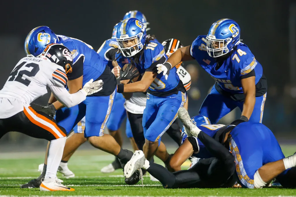 Graças ao brilhantismo bidirecional de Malakai Taufu, os Serras se recuperaram de 21 a 14 no quarto período para vencer o campeonato da Divisão I do CCS na noite de sexta-feira em San Jose.