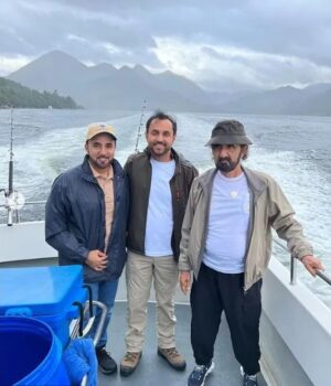 O governante bilionário de Dubai, Sheikh Mohammed bin Rashid Al-Maktoum, em sua propriedade em Inverness, em Wester Ross, Escócia, em agosto