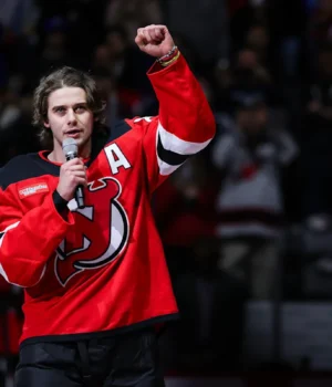 “Você me emociona”, disse Hughes. “Mas estou muito orgulhoso de representar a organização New Jersey Devils. E estou muito orgulhoso de representar o grande estado de Nova Jersey.