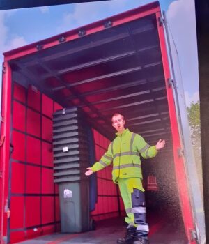 Rowe sofre de distrofia miotónica (DM) e TDAH, mas trabalhou como carregador de resíduos durante nove meses como parte do seu estágio apoiado.