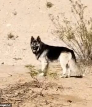 O adorável husky foi encontrado vagando pelo deserto de Tucson e presumiu que seus donos deveriam estar por perto.