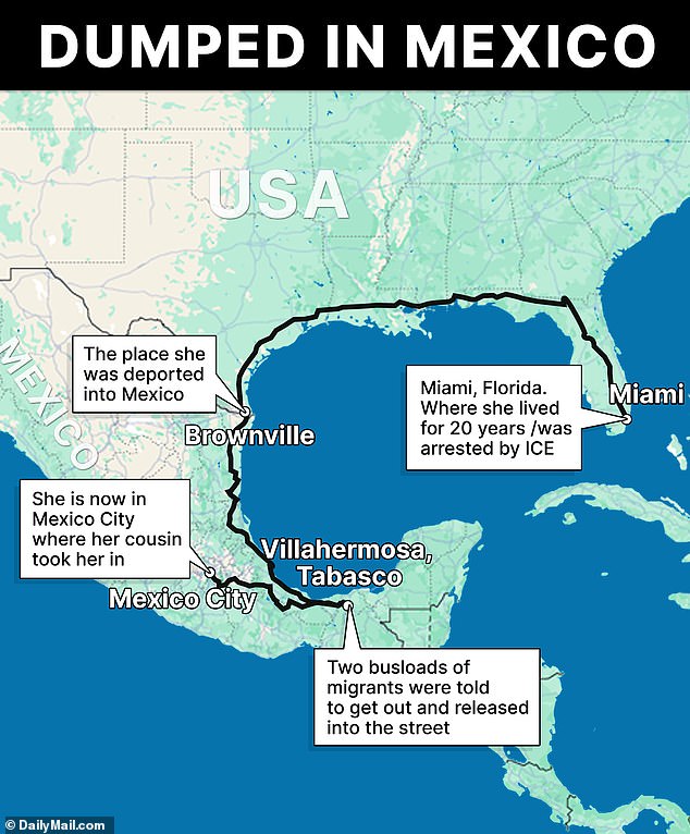 Uma mulher da Venezuela ficou presa por cerca de dois meses depois de ser presa por gelo em Miami, dois ônibus no México depois de ser deportado para imigrantes ilegais no México.