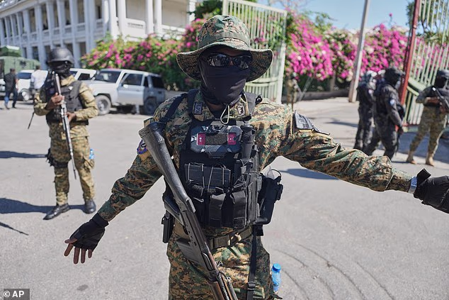 Membros da Unidade de Segurança Geral do Palácio Nacional (USGPN) formam um perímetro de segurança enquanto o Presidente do Conselho de Transição, Laurent Saint-Cyr, visita o quartel-general das forças armadas em Porto Príncipe, Haiti, segunda-feira, 26 de janeiro de 2026.