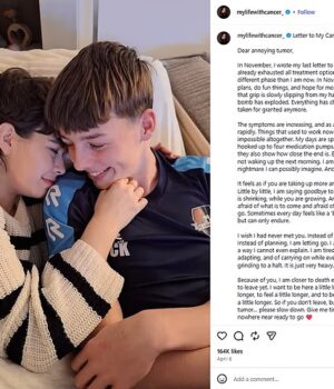 O adolescente escreveu uma postagem comovente no Instagram em 6 de abril, com a legenda: ‘Querido tumor chato’.