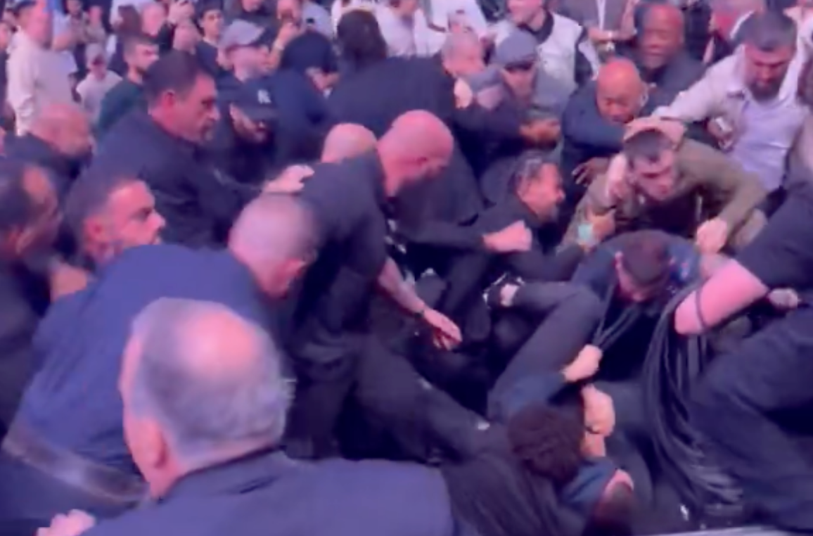 Não está claro o que exatamente desencadeou a briga, mas dezenas de corpos, incluindo de seguranças e policiais, ficaram na briga. Multidões se acotovelavam ao longo da fileira de imprensa quando o diretor de negócios do UFC, Hunter Campbell, chegou para tentar acalmar as coisas.