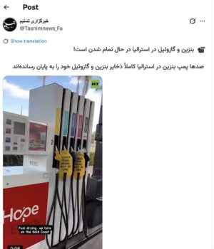 A mídia estatal iraniana zombou da crescente escassez de combustível na Austrália, depois que centenas de estações de serviço ficaram sem gasolina ou diesel, enquanto o governo albanês culpava as compras pelo pânico pela interrupção.