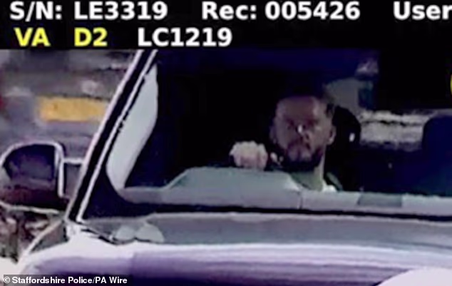 Na foto: Ben Dockett ao volante de seu carro quando foi pego em alta velocidade pela Polícia de Staffordshire em Stoke no ano passado. O jogador de críquete do England Test estava dirigindo a 150 km/h em uma zona de 110 km/h