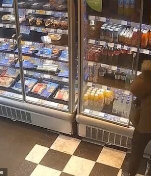 Imagens de CCTV mostram Adam Gosling, 39, roubando bebidas de uma loja Greggs em Greenford, oeste de Londres