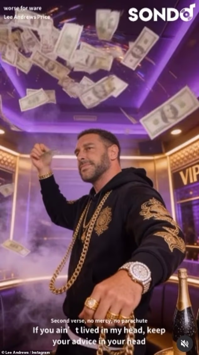 O marido de Katie Price, Lee Andrews, compartilha uma música e um videoclipe ‘original’ bizarro gerado por IA, com ele jogando dinheiro para o alto e descansando em um iate de luxo