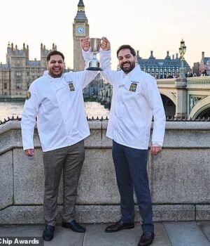 Dois irmãos, Aman e Gavin Desi, que dirigem a Scrap Box de York, ganharam o Takeaway do Ano do National Fish and Chip Awards 2026 no Park Plaza Westminster Bridge, em Londres, na noite passada.