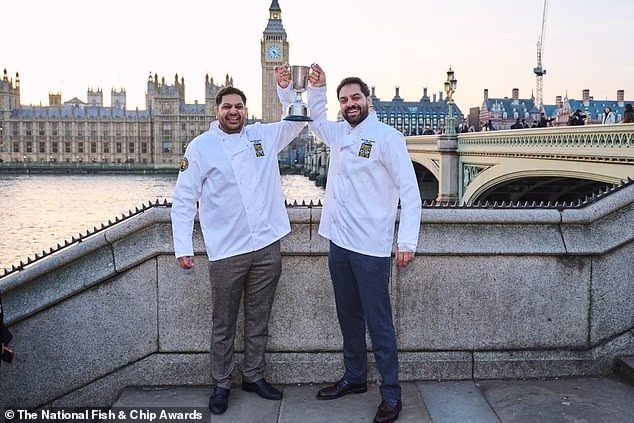 Aman, 36, e Gavin, 33, venceram a 38ª edição da competição oficial de fish and chips do Reino Unido.