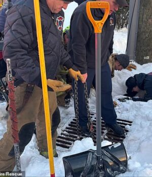 Bombeiros da Virgínia correm para resgatar um menino que caiu no ralo depois de brincar na neve