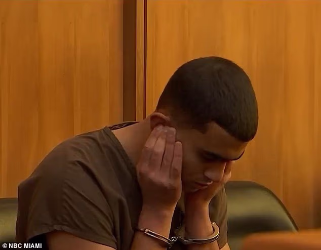 Um adolescente da Flórida acusado de esfaquear sua mãe até a morte quando tinha apenas 13 anos foi visto cobrindo os ouvidos enquanto um vídeo de sua confissão era exibido no tribunal.