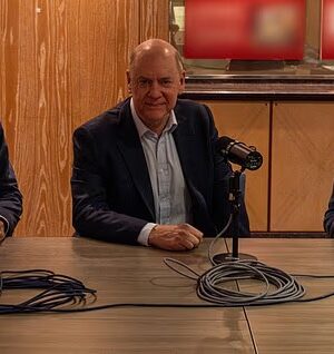 O ex-diretor do MI5, Lord Jonathan Evans (centro), revelou a Gordon Correa (à direita) e David McCloskey (à esquerda) que o serviço queria usar gerbos para capturar suspeitos.