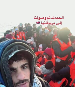 Ele enviou um vídeo de si mesmo e de outros em um bote no canal que atingiu um barco de força de fronteira, na legenda: ‘Graças a Deus Shawar, chegamos à Grã -Bretanha’.