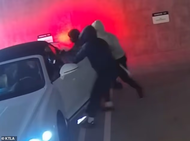 Segundo a vítima, com quem se fala KTLA Mas depois de pedirem para não serem identificados diante das câmeras, os suspeitos o arrastaram para fora e o chicotearam com uma pistola antes de bloquear seu carro em um SUV de cor clara.
