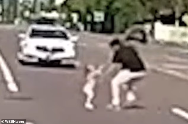 Imagens de câmera de parar o coração capturam o momento em que um pai arrisca sua vida para resgatar os dois filhos de um estranho em uma movimentada rodovia da Flórida.