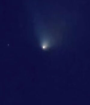 Após a interrupção, um grande brilho azul claro e roxo surgiu e permaneceu no céu noturno.