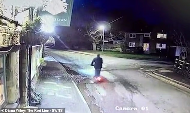 Imagens de CCTV mostram piloto de scooter eletrônico se aproximando de um buraco do lado de fora do pub Red Lion em Oxfordshire