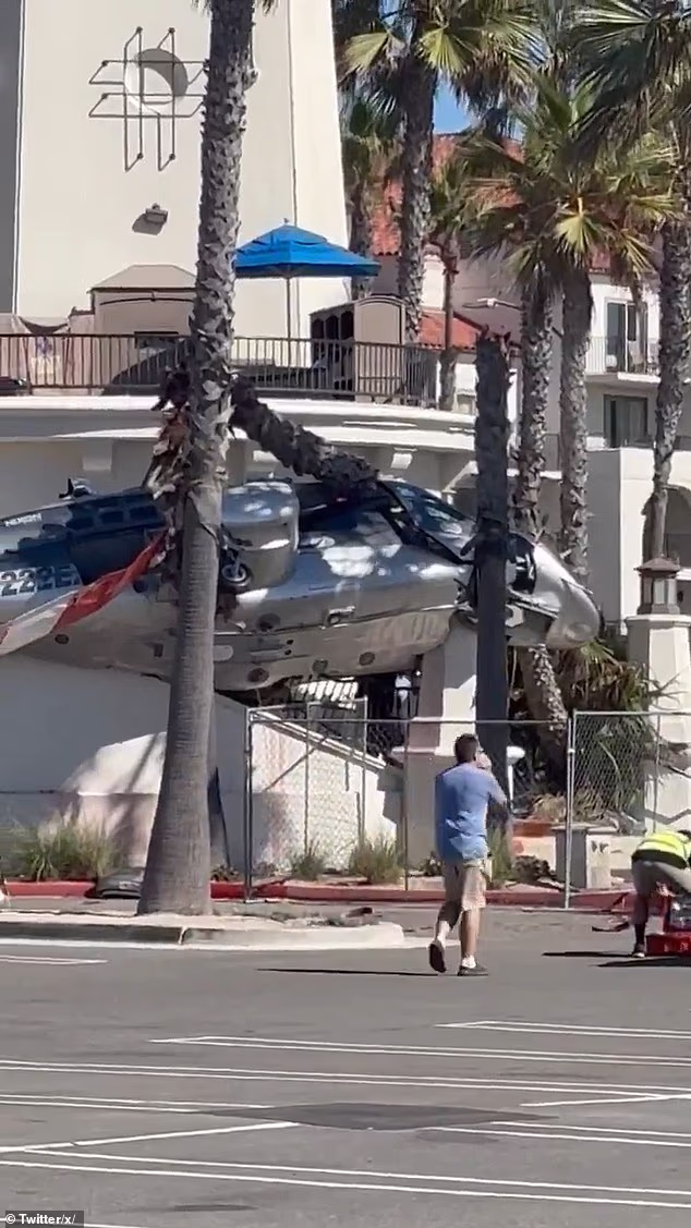 Relatórios preliminares indicam que o avião estava fora de controle e uma ‘falha no rotor de cauda’ estava sofrendo com uma série de palmeiras antes e fora do Hyat Hotel.