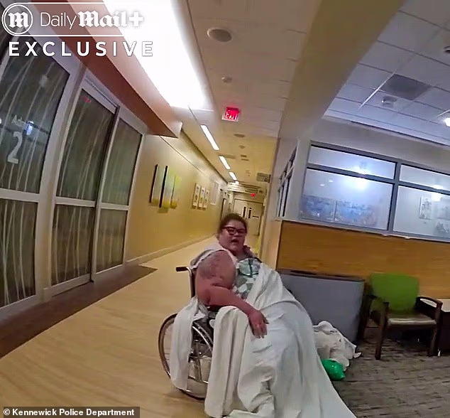 Jaelyn Chaney, vista dentro do hospital em Kennewick em fevereiro passado, foi presa fora das instalações depois que a equipe ligou para o 911 para removê-la após ela supostamente ter abusado da equipe.