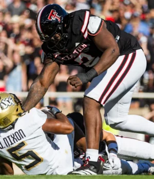Com 1,80 metro e 318 libras, ele jogou nariz para os Red Raiders e fez exatamente isso.