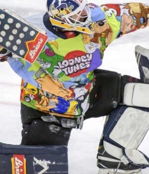 Após cada um desses oito shutouts, ele desligará a trave e o alvo estará no gelo, simbolizando a rede para todos os desafiantes.