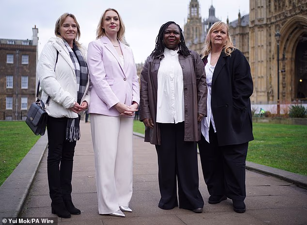 A enfermeira do NHS, Jennifer Mayle (centro da frente), que foi suspensa após se referir a um paciente pedófilo transgênero como ‘Sr.’, foi autorizada a retornar ao trabalho hoje.