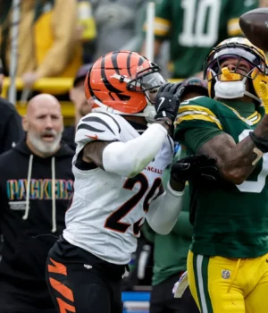 Packers pegou a embreagem na quarta descida empate 40 em Dallas, e então teve uma recepção crucial de terceira descida que levou a um field goal decisivo. Vitória por 27-18 sobre o Cincinnati Bengals.