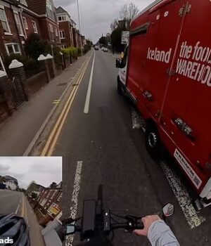 Um novo vídeo mostra um confronto entre Adrian Chapmanall – apelidado de ‘novo Mikey do ciclismo’ – e o entregador Islândia em Poole, Dorset.