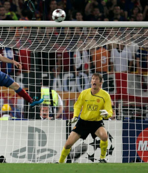 Javi Hernandez, Barcelona, desceu à direita do campo e levantou um chip na caixa de penalidade. Messi – não conhecido pelos títulos – a bola saltou para alcançar a bola que foi estimada no ar a cerca de 2,70 metros), que restabeleceu o goleiro do Manchester United, Edwin Van de Sar, no seu anterior.