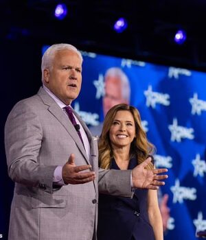 O presidente da União Conservadora Americana, Matt Schlapp, fala com sua esposa Mercedes na Conferência de Ação Política Conservadora.