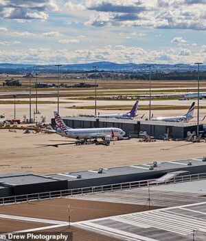 Um homem de 29 anos e um menino de 15 foram presos no aeroporto doméstico de Melbourne na terça-feira
