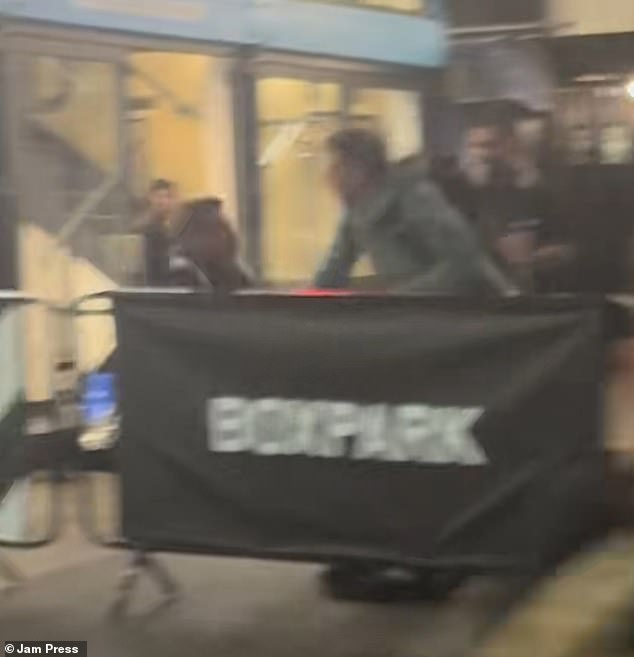 Esse momento chocante foi capturado na câmera para subornar um segurança no chão de Boxpark em Londres antes de lutar com ele no chão.