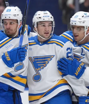 Braden Shane fez um gol e apoio e Nick Bizgstad e Jack Nebers também marcaram para os Blues. Jordan Binrangton parou 20 arremessos porque o St. Louis venceu o segundo jogo, um após o outro.