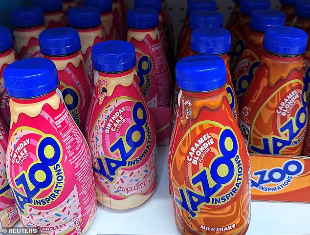 Garrafas de milk-shake com sabor Yazoo estão à venda nas prateleiras de um supermercado em Manchester.