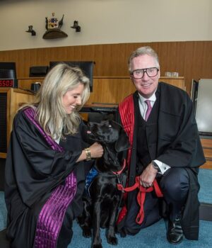 Um mês depois, eles participaram de uma conferência de dois dias organizada pela Hunter Valley Family Law Practitioners Association, onde o juiz Mancini falou sobre o Court Dog Therapy Program, Revisão Financeira Australiana Relatório
