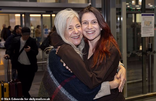 Isabelle Robertson, 29, de Windsor, foi saudada com abraços de sua mãe Alba ao pousar na segunda-feira.