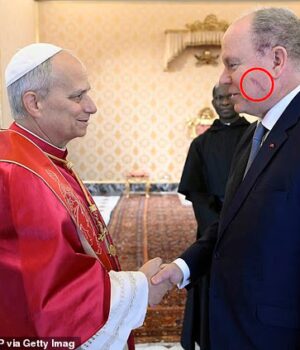 O Príncipe Alberto de Mônaco foi flagrado com uma cicatriz profunda na bochecha enquanto se reunia hoje com o Papa Leão XIV.