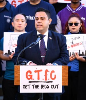 “Estou apresentando hoje um projeto de lei que traça uma linha moral aqui na Califórnia. Estamos chamando-o da maneira como vemos, da maneira como sentimos e, respeitosamente, o projeto de lei GTFO ICE – em outras palavras, tire os federais”, disse o membro da Assembleia Mark Gonzalez, D-Los Angeles, aparentemente outra sigla que é comumente associada.