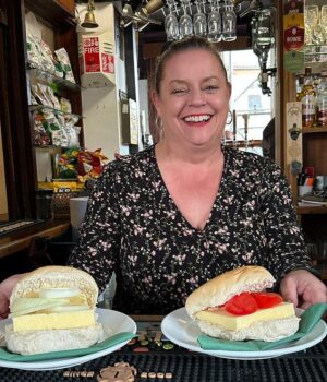 A Sra. Web diz: ‘Acho que nossa CBS é a primeira com um queijo tão grande e pedaços de cebola. Eles são loucos, nós sabemos!