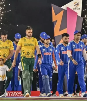 A África do Sul encerrou a invencibilidade de 12 jogos da Índia na Copa do Mundo Masculina T20 da ICC, no Estádio Narendra Modi, no domingo.