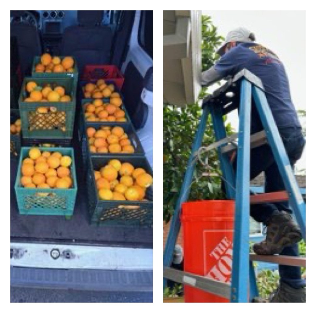 Os voluntários foram organizados como parceiro com esta colheita, colheita e embalagem de frutas, que mais tarde foram distribuídas entre os clientes dos Serviços Comunitários de West Valley que estavam trabalhando com insegurança alimentar.