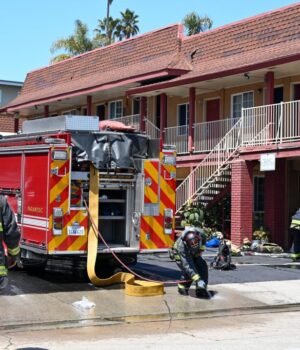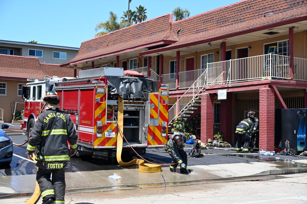 A tripulação de bombeiros, que foi recebida às 13:48, correu para o local e saiu do primeiro andar de fumaça pesada do motel.