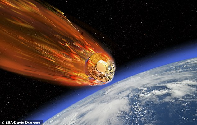 Os astrônomos agora acreditam que 17.000 milhas por hora (ilustrada) é um objeto brilhante que se move em direção à terra é o módulo de pouso na espaçonave, a única peça que ainda não caiu na terra